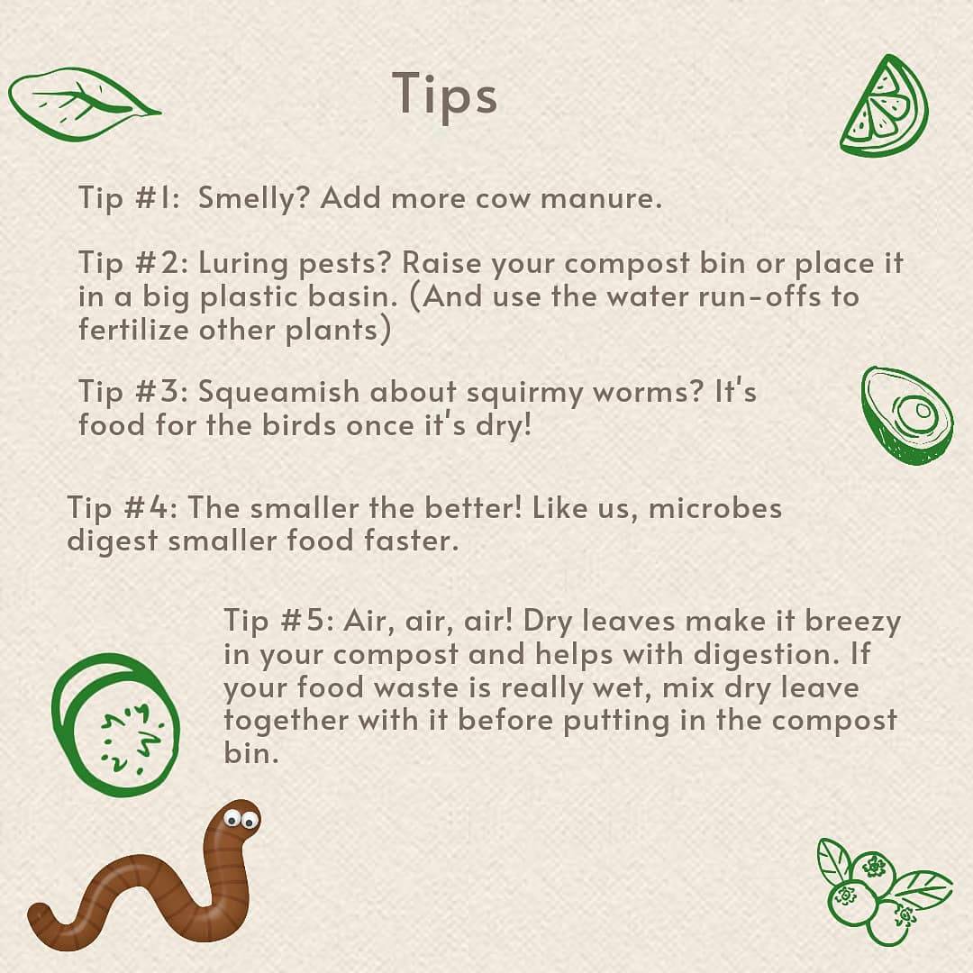 Tip #5: Air, air, air! Dry leaves make it breezy in your compost and help with digestion. If your food waste is really wet, mix dry leave together with it before putting it in the compost bin.